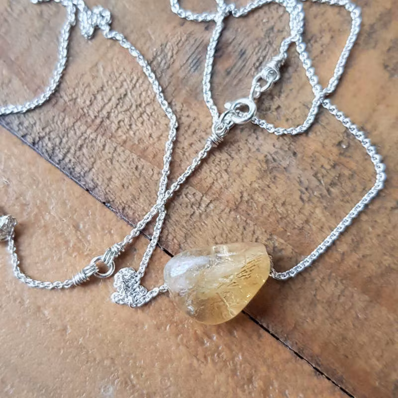 - Silverhalsband med vacker citrin i mjuka ljusgula nyanser.