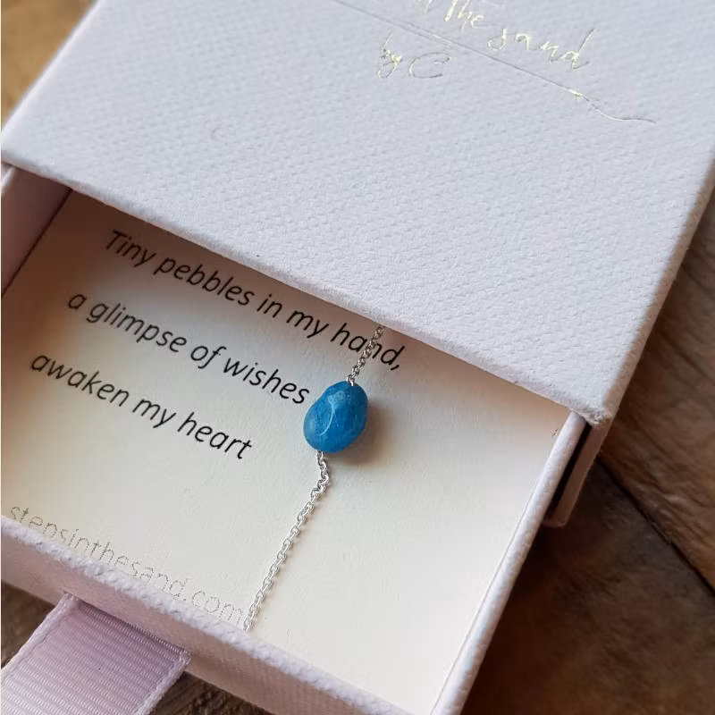 - Tunn silverkedja 1mm i diam. med pebble av mörk apatit i blå/turkos nyans, ca 6x7mm.