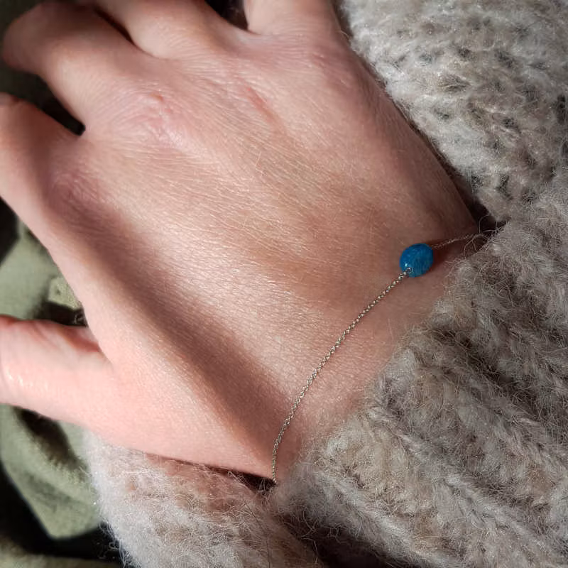 Silverarmband med liten kristall av vacker blå apatit