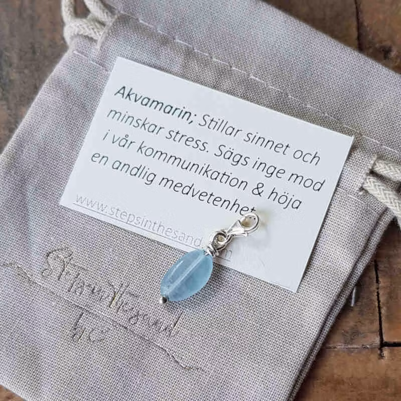 Akvamarin; lugnande energier, bidra till minskad stress. En harmonisk inverkan, bygger också mod.