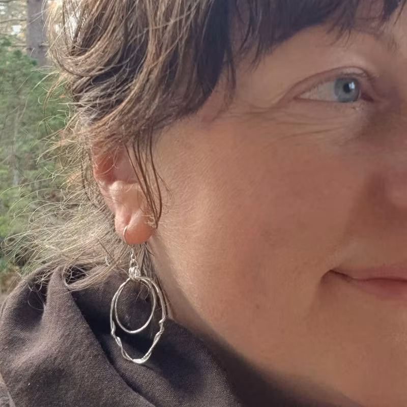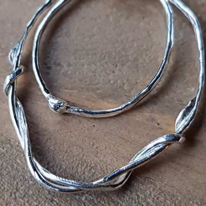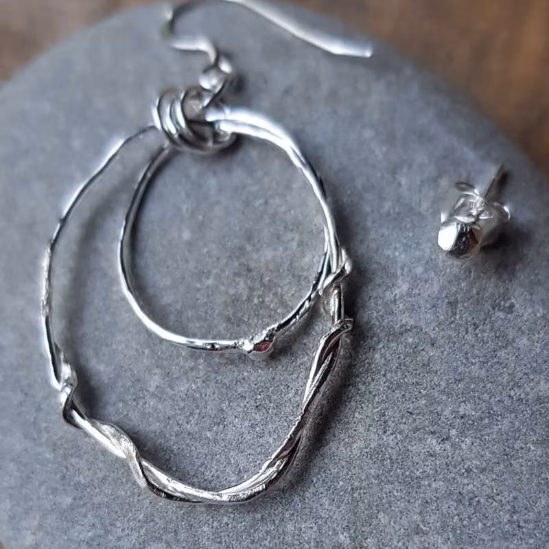 Med inspiration från sjögräsets & tångens virvlande lek i havskanten har jag skapat dessa silverörhängen. Jag skapar ett exemplar i taget, varje örhänge får sin egen unika känsla. Örhänget kombineras med ett litet stud-örhänge, så du bär det formade örhänget i ena örat & det lilla stud-örhänget i det andra.