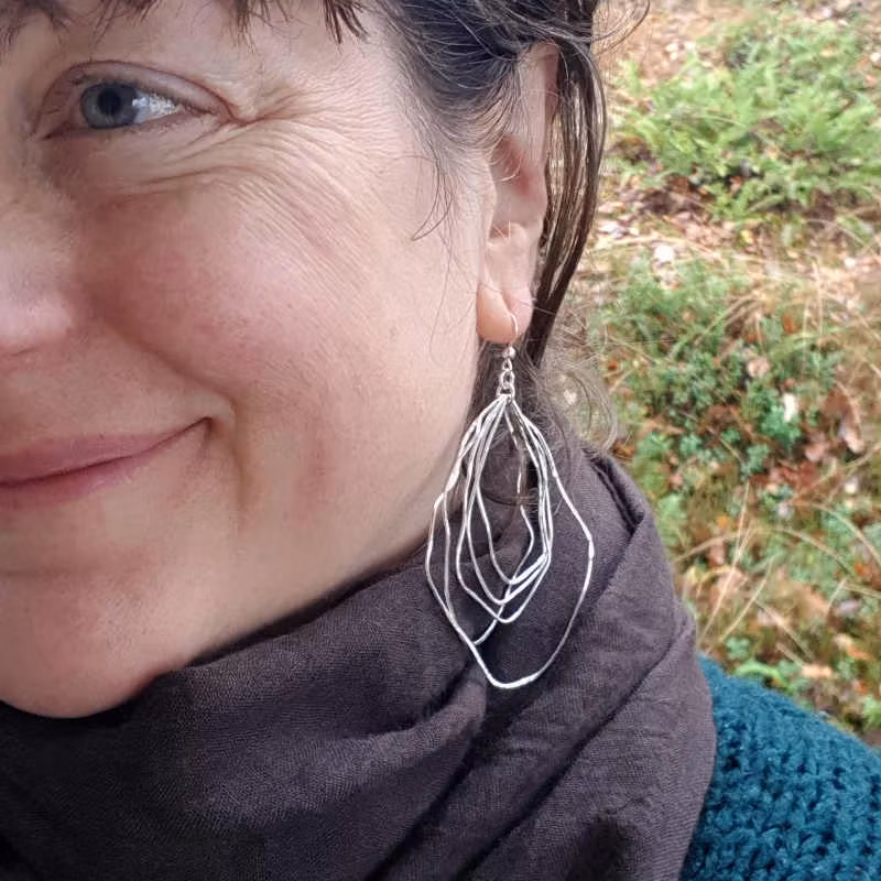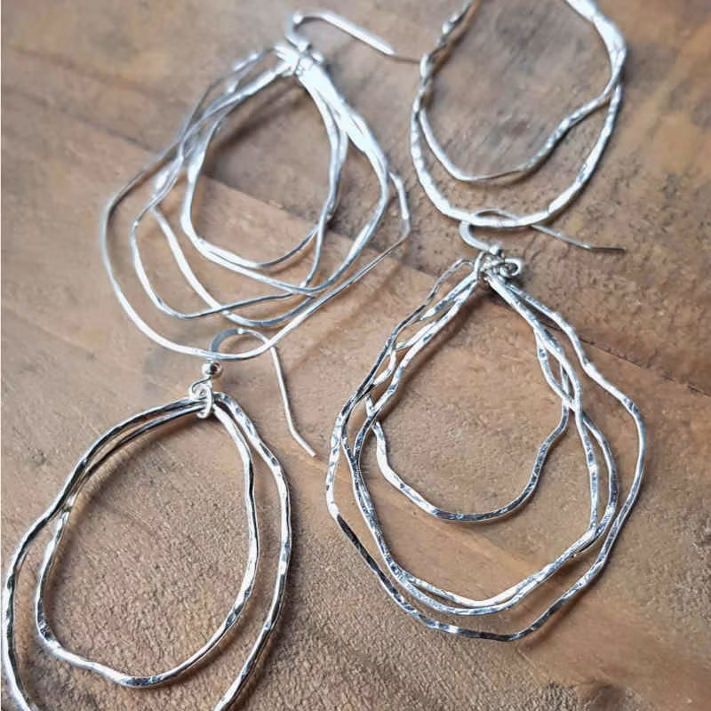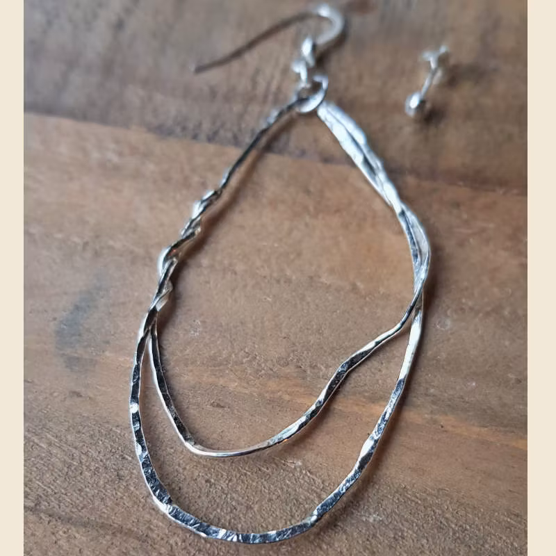 - Nr 2: Flowigt örhänge i fem lager. Varje lager leker fritt. Längd ca 70mm, bredd ca 50mm.