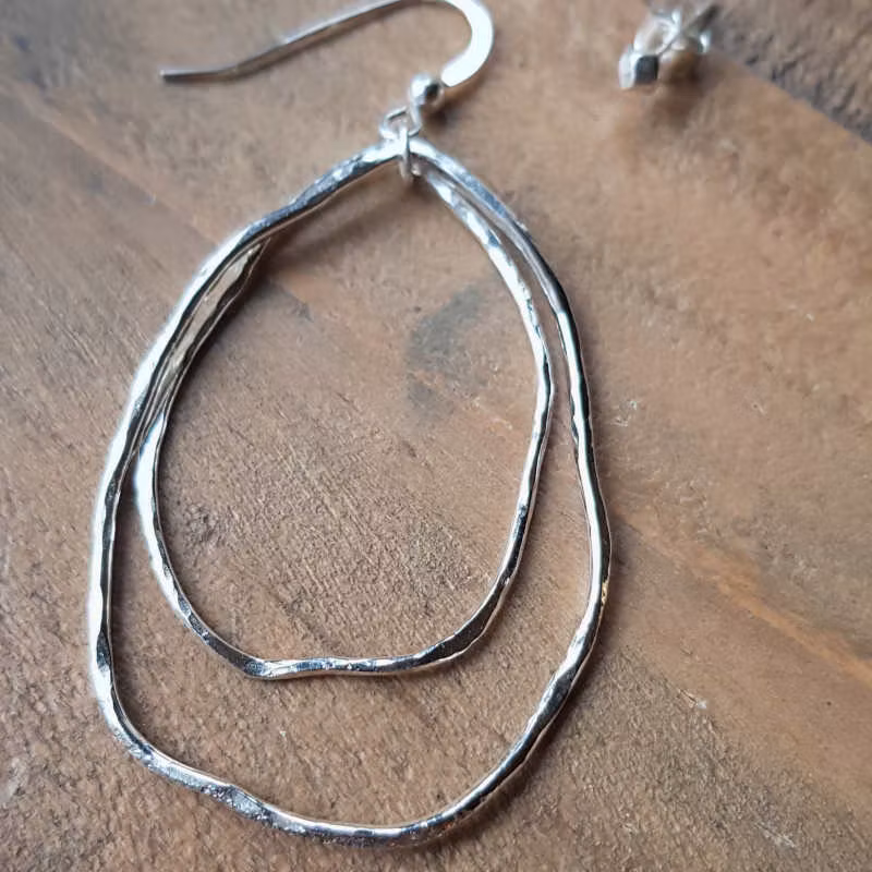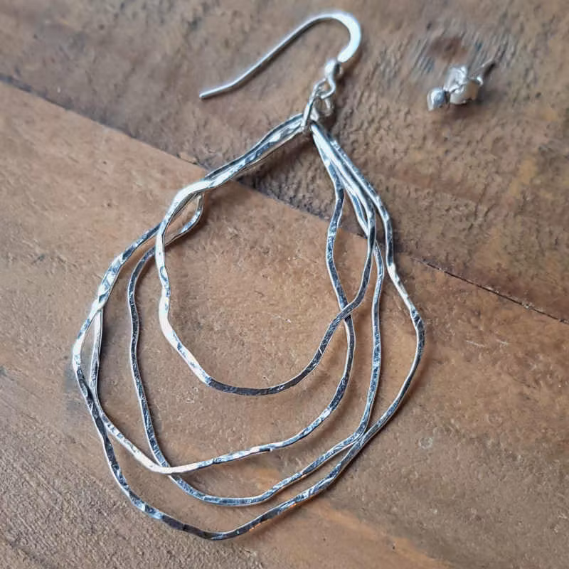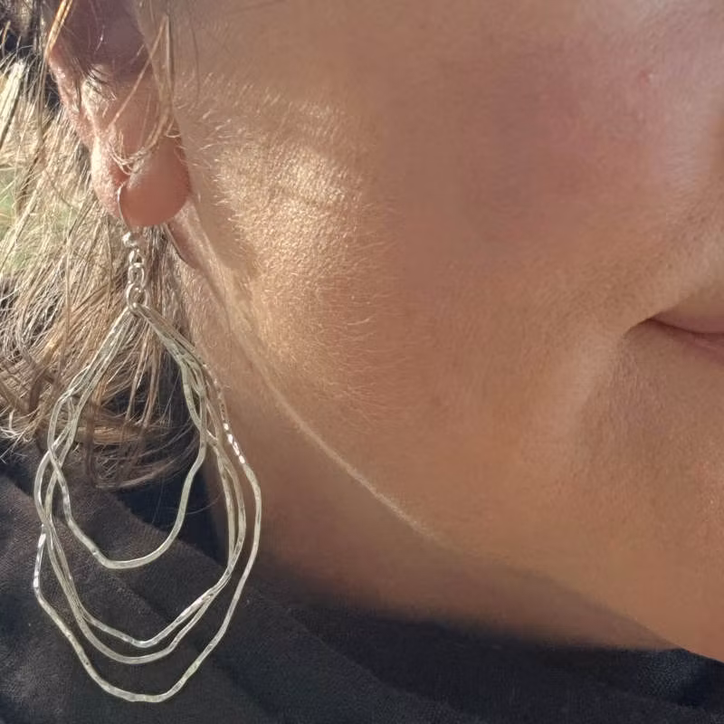 - Nr 1: Flowigt örhänge i fyra lager. Varje lager leker fritt. Längd ca 60mm, bredd ca 45mm.