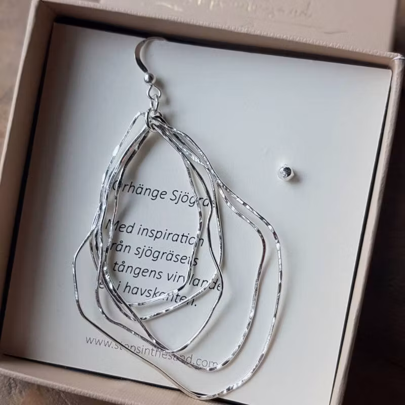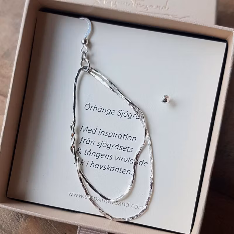 Örhänget skicks i fin smyckeask. Dessa örhängen tillhör kollektionen Sjögräs där även det mindre örhänge Sjögräs liten ingår.
