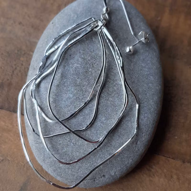 - Nr 4: Två lager tråd, varje lager leker fritt. Lite tjockare silvertråd i denna ca 1.5-1.8mm. Längd ca 50mm, bredd ca 35mm.