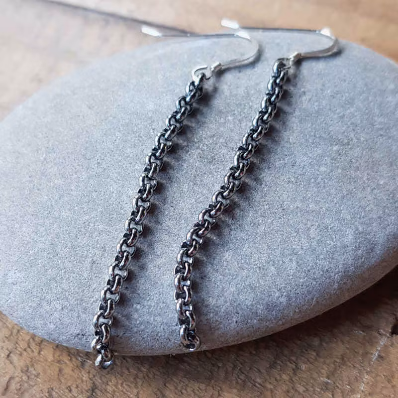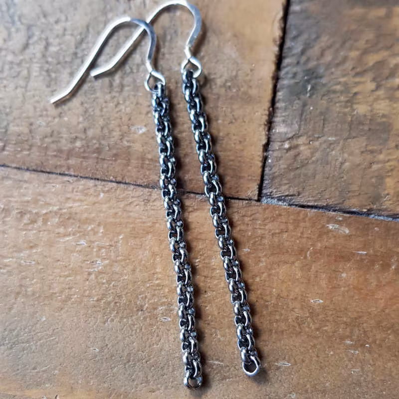 Härliga kedjeörhängen i silver med mjuk & följsam känsla. Den lätt oxiderade ytan skapar ett rustikt uttryck. Finns ett unikt par, skickas i fin smyckeask.