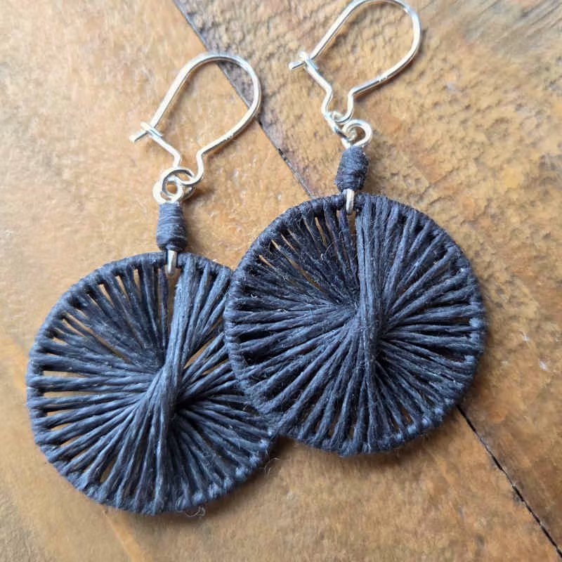 Örhängen av återvunnet silver & lingarn